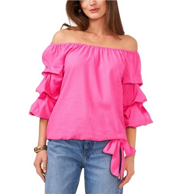 Adrianna Papell Womens Embroidered Floral Off the Shoulder Blouse
