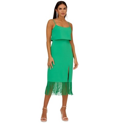 Adrianna Papell Womens Solid Slit Sheath Ruffled Midi Cocktail Dress