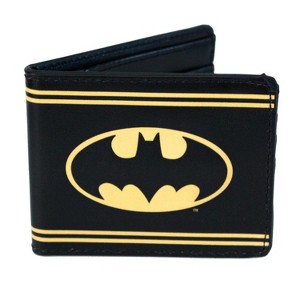 Durable bi-fold Batman striped wallet. Portrays the "Batman" logo with yellow stripes on the outside. Officially licensed.