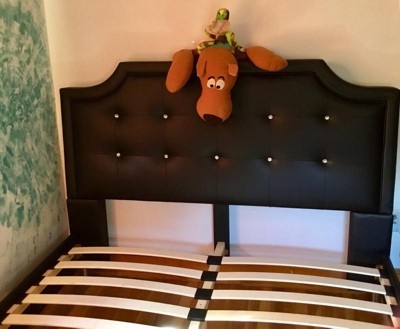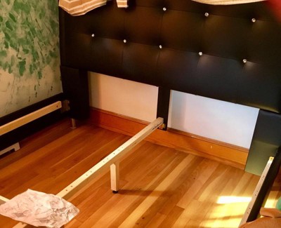 Total wow‼️ This QUEEN size IS built solid good WOOD frame support system meaning we have a pair of white padded rhinestone beds WITH MORE RHINESTONE PADDED DETAILS in headboard -which yes we did pay more for years ago (not from TARGET) that clearly aren’t as heavy or sturdy as this one is! Our bed was delivered by FedX to house and box was beat up a bit, but packaged well however dayum..... there is a tiny tear in the seam area in front on top of the headboard and no place else‼️ Used a sharpie marker to fill in the slight defeat/damage and WE ARE OKAY WITH THAT BN AS IS❗️ ((The map/directions for this bed are labeled but the items pieces parts are NOT labeled )) All screws nuts bolts are in one mixed up bundled baggy)) However this ain’t our first QUEEN Rhinestone padded bed so we get the process of its build requirements order❗️Also we got this bed on sale under $355.00 from TARGET we hope our photos help others to get it or forget (*V’) and to all a good nite