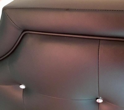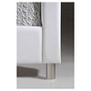 Clean, crisp, and contemporary is the Carlotta Designer Bed frame. Soft white faux leather outfits a scallop-cornered headboard with matching upholstered side rails and low footboard, making this a sleek style for sleeping. Malaysian-made, the full sized Carlotta Contemporary Bed features an inner frame of hardwood and plywood, which are padded with foam before being upholstered. Faux crystals stud the headboard, creating a trendy button tufted look. This is a platform bed: wooden slats (included) serve as a box spring so only a mattress and bed linens are needed (mattress and linens are not included). Tying everything together are silver metal legs with non-marking feet. Easily maintain the Carlotta Bed by wiping clean with a damp cloth as needed. This style requires assembly and is offered in black (full, queen, and king size) or white (full, queen, and king size); each sold separately. 57.5 "W x 83"D X 47.5"H