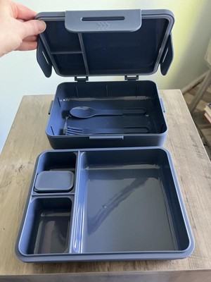 submitted byNicole - 5 months agoA: Hello VLR - We appreciate your interest in this product. This has 3 sections, small bento box, spoon, fork, latch closure, leak proof, food safe, BPA free. I hope this helps, happy shopping at Target! - Griffin