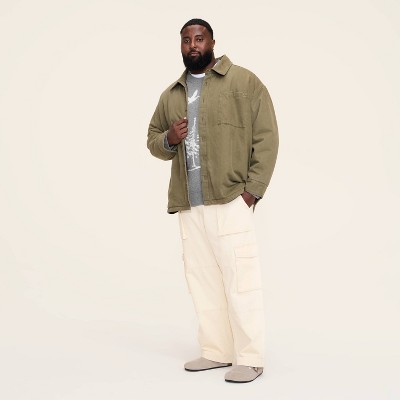 Not crazy about the way the green looked in this jacket. Looks like it will look old quickly after a wash or 2. It’s kind of faded. The medium fit better because it fit around my hips. I’m usually a medium. But it does fit oversized. Definitely fits like menswear.