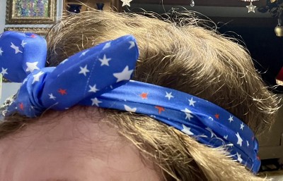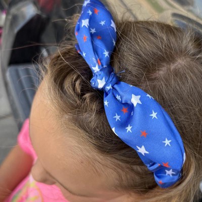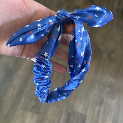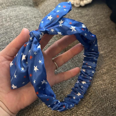 [This review was collected as part of a promotion.] This patriotic headband with a bow is very cute. The size says adult, but this fit my eight-year-old very well. The material is very silky and soft. It does not pull on your hair when you wear it, but it also stays in place very nice. The cute bow on top has a bendable material inside it so you can shape it how you want to. This could be worn with your hair up or down. This is an overall very cute accessory! I received an incentive to write this review.