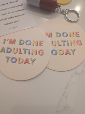 are not sure if you want to go out. Laundry bag that tells you how to sort and wash. Two coasters that say "I'm done adulting today" also