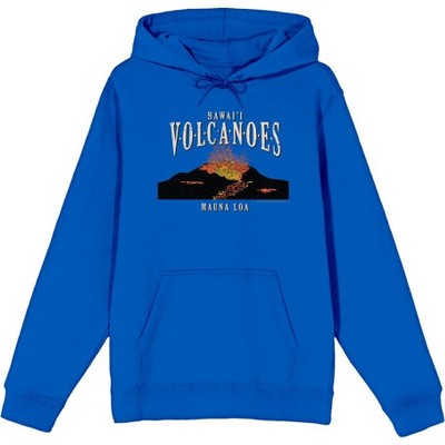 Adventure Society Hawaii Volcanoes Long Sleeve Adult Hooded Sweatshirt-Medium-Blue