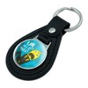- DURABLE LEATHER KEYCHAIN: Give your keys some street cred with our leather keychain with durable resin-topped emblem. Pocket-sized for convenience, this keychain easily stows away in purse, pocketbook, or evening bag. The easy-to-spot image makes it perfect for keeping track of that special set of keys.
