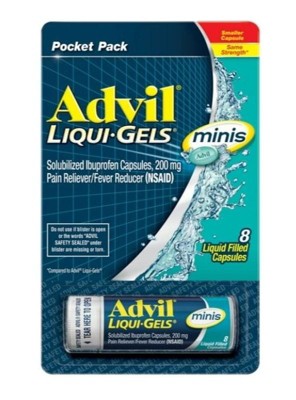 Advil liquid gel minis are perfect for on the go just in case you have any pain relief needs. Perfect to fit in your purse or your car perfect for the go.
