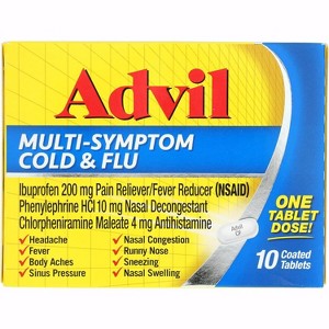 Advil Multi-Symptom Cold & Flu Tablets, Pain, Fever, Congestion & Cough Relief, 10 Count