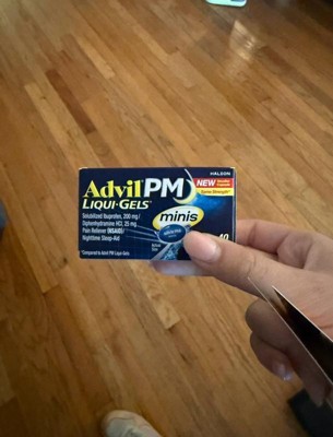 [This review was collected as part of a promotion.] Advil PM Liquid Gel Minis work quickly to ease minor aches and help me fall asleep faster. The combination of ibuprofen for pain relief and diphenhydramine as a nighttime sleep aid is effective without feeling overly strong the next morning. They have no noticeable scent, which I appreciate. The liquid gel texture makes them easy to swallow, and the compact bottle is convenient for travel or keeping by the bedside. For the quality and trusted brand, the price feels fair, especially given how well they work.