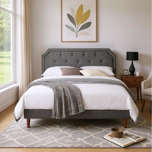 AEELLEEA Linen Upholstered Adjustable Headboard Bed Frame