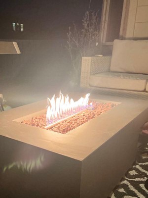 [This review was collected as part of a promotion.] I was lucky enough to claim the Aegean 42" Rectangle Steel Propane Gas Fire Pit Table by Real Flame and it's working out extremely well. We got the color 'Weathered Slate' and it has such a simple, concrete look to it. Fantastic piece, beautiful color and high-quality construction. Dead-simple operation, great flame. Perfect for smaller areas, but would look great in a larger setting as well. We also plan on purchasing the matching tank cover and table cover to really complete the set. Fits the space, was easy to convert to natural gas and install and provides the look we were hoping for. It is wood safe for anyone who may need to place this on their wood deck or porch which I think is a bonus considering it's aimed for everyone. It has an adjustable flame height which I also really like because sometimes you want a higher flame for roasting marshmallows and a lower flame for hanging around the fire! Would recommend Real Flame products to anyone and will definitely be purchasing from them from now on for anything we may need! :)