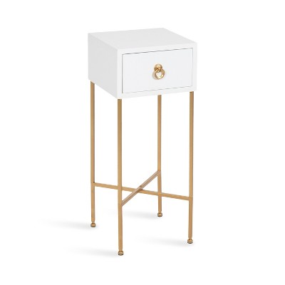 Add a touch of modern elegance to your bedroom with the AENKYO White Nightstand. This compact 15.75"W x 15.75"D x 22.83"H table features a sleek white finish, a practical drawer, an open shelf, and a stylish gold-accented handle. Perfect for keeping essentials organized beside any bed, it¡¯s a durable and stylish addition to your space.