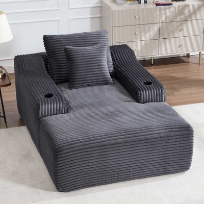 AENKYO 67" Chaise Lounge Chair, Corduroy Oversized Sleeper Sofa Bed with Cup Holders Study Room & Bedroom, No Assembly Required, White