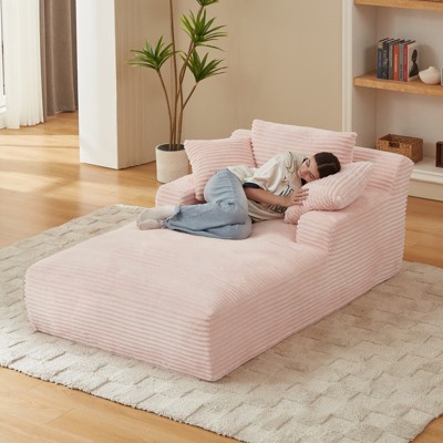 AENKYO 75" Oversized Lounge Chair, Polyester Foam Chaise Lounge with 5 Pillows and Ottoman, No Assembly Required, Modern Armchair for Living Room