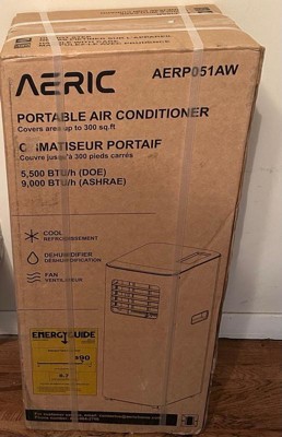 Aeric 5500 BTU Portable Air Conditioner: 9000 BTU Cooling, 3 Speeds, Remote, Timer, 200-500 sq. ft. Room, White