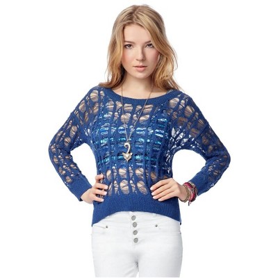 Aeropostale Womens Colorblocked Sleeve Crew Knit Sweater