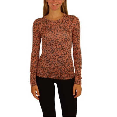 Express your style with the Aeropostale Women's Printed Basic T-Shirt. This Indonesia-made t-shirt is a blend of 96% Rayon and 4% Spandex, offering medium-weight comfort. Its animal print adds a wild twist to this casual crew neck, long-sleeve tee.