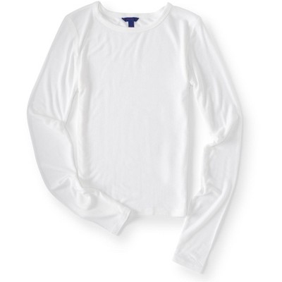Aeropostale Womens Sheer Cropped Lace Basic T-Shirt