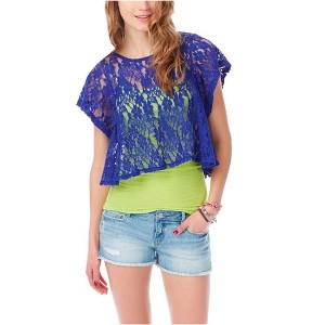 Aeropostale Womens Sheer Cropped Lace Basic T-Shirt
