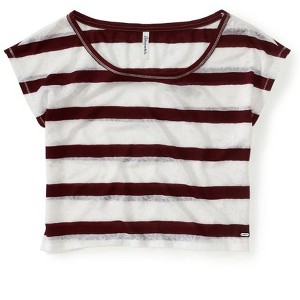Refresh your wardrobe with the Aeropostale Women's Stripes Lace Pullover Blouse. This casual blouse features a horizontal striped pattern with a lacey design in between the stripes. The wide crew neck and short sleeves give it a relaxed, stylish look.