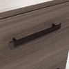 collection. Added security with this pedestal file cabinet features two locking drawers with full extension slides that hold letter or European size hanging files. This office file pedestal ensures that your important documents are secure and organized. With safety in mind, this mobile file cabinet includes an interlocking mechanism that allows only one drawer to open at a time. Rearrangement and flexibility are vital to a vibrant office energy, that's why commercial filing cabinets such as this include hidden casters for easy mobility. This pedestal file cabinet is finished on all sides for versatile placement in any office. With a Hudson Elm finish, this 2-drawer mobile pedestal is the epitome of great commercial office furniture: sturdy, durable, and eye catching.