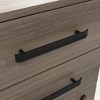 collection. This 3-drawer pedestal file cabinet features two small drawers with metal runners and safety stops that are ideal for storing office essentials like pens, extra paper, sticky notes, and your planner. The locking, lower drawer of this file cabinet has full extension slides and holds letter or European size hanging files, keeping your most important documents organized and secure. This commercial filing cabinet includes an interlocking safety mechanism that prevents all drawers opening at the same time. For use as a mobile file cabinet, it includes hidden casters for easy movement around the office, so you can rearrange and reorganize easily. This file pedestal is finished on all sides for versatile placement at the office—it will look polished from every angle, showing off its distinct Hudson Elm finish. Integrated commercial filing cabinets, like this one, completes your office space with a stylish touch.