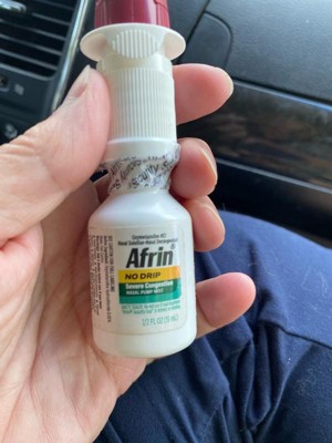 - Spray Afrin 12 hour nasal decongestant pump mist two or three times into each nostril