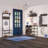 The RiverRidge Home Afton Hall Tree with Entryway Bench Seat, Coat Hooks and Top Shelf is the ultimate shoe organizer for entryway spaces. This compact shoe storage organizer features two versatile shoe racks, accommodating 4-6 pairs. The built-in shoe storage bench offers a convenient spot to sit while putting on or removing footwear. With its narrow design, our hall tree maximizes storage in small entryways, providing both functionality and style. Transform your space with our sophisticated entryway furniture. The Afton Hall Tree Brown serves as an entryway bench with storage, combining form and function. Its weathered woodgrain finish and black metal frame create a modern aesthetic. Our shoe bench with storage includes three double coat hooks and an open top shelf, offering ample space for jackets, bags, and decorative items. Anchor it to the wall for added stability in high-traffic areas.