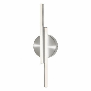 Material: Steel, Finish Color: Satin Nickel, Width: 4.68", Height: 16.85", Depth: 2.32", Height From Outlet Box: 8.25", Backplate Width: 4.68", Backplate Length: 1.57", Lamping Type: LED, Number Of Bulbs: 2, Wattage: 7.5 Watts, Cri: 90, Color Temperature: 3000 Kelvin, Lumens: 1100, Dimmable: Yes, Moisture Rating: Damp Rated