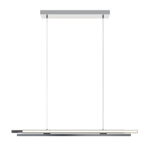 The lamp is great. It looks nice and provides good light - in several directions. And best of all, because the cables are adjustable it hangs beautifully on a slanted ceiling. We love it!