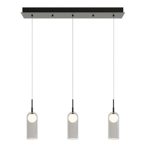 The Kiran 3 Light Linear Pendant by AFX is made using a simple suspension design that is brought to life with its set of round downlight diffusers. This light features integrated LED for bright and efficient light targeted over kitchen islands, dining tables, even bath spaces. It's a cool contemporary look with a dimmer for added versatility. Dimmer: TRIAC/ELV / Integrated LED / Suitable for damp locations / Incandescent Equivalent Wattage: 40. ,