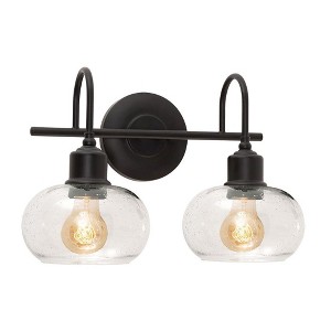 The Laney 15'' Vanity by AFX embodies vintage sophistication with modern sensibilities. With a black finish and 2 seeded glass globe shades, this fixture provides the perfect touch to a chic bathroom or vanity room. Dimmer: TRIAC/ELV / Light bulb not included / Suitable for damp locations. , Material: Glass, Finish Color: Black, Width: 8.1", Height: 10.1", Length: 15.3", Depth: 8.1", Height From Outlet Box: 4.75", Backplate Width: 5.1", Backplate Length: 1", Lamping Type: Incandescent, Number Of Bulbs: 2, Wattage: 60 Watts, Dimmable: Yes, Moisture Rating: Damp Rated