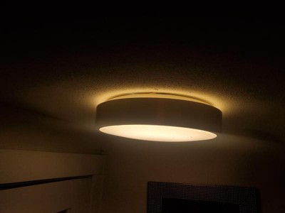 The light looks nice mounted even though it is not exactly a flush mount to the ceiling as indicated. I purchased a light on sale for $179 and I believe those light fixtures that are very similar at less than 30% of that price, that also do different things that this fixture does not offer.