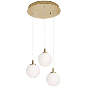 Create a contemporary ambience in your home with the Loretto 3 Light Round Pendant by AFX. This multi-point pendant with a medium base socket features white glass globes that hang from a satin brass canopy. Get a polished look in your kitchen, living room, or dining area with this distinctive light. Simple, classic pendant globe with white glass diffuser. Suspended by a 9 ft. adjustable cord in linear or round metal multi-point canopy. Available in three finishes. Medium base socket for multiple lamping options. / Dimmer: TRIAC/ELV / Light bulb not included. ,