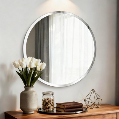 Aghana Digitals 23.6 Inch Round Indoor Wall Mirror with Polished Synthetic Glass, Minimalist Design Transparent 23.6 x 23.6 x in