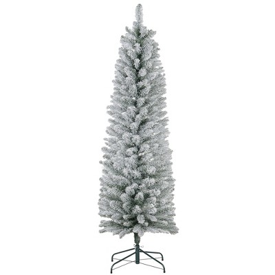 Aghana Digitals 5ft Slim High Mountain Fir Christmas Tree with Bent Santa Hat Top, 100 Warm White Green 19.70×19.70×59.80 in