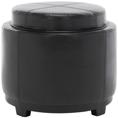 Aghana Digitals Chic Black Faux Leather Ottoman Stool - Lightweight Footrest with Padded Seat & Black 15.80×11.50×9.50 in