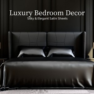 Aghana Digitals King Size Satin Bedding Set - 4 Pcs Silky Sheets with 15" Deep Pocket Mattress Fit, - 1 of 4