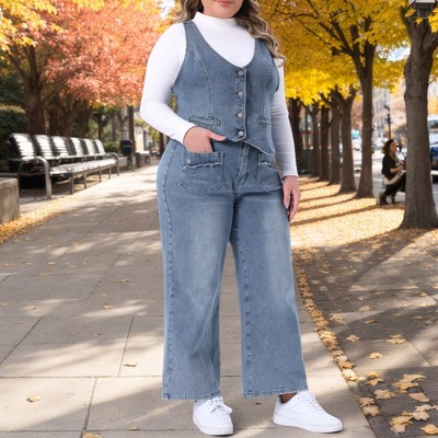 This two-piece outfit for women features suit vests and wide-leg pants, creating a stylish and versatile set. The sleeveless vest top includes a front button closure, offering both convenience and a decorative touch. These pants feature an elastic waistband complemented by a drawstring, allowing for a personalized fit that accommodates a range of plus-size figures with ease. Designed for multiple occasions, this set is perfect for parties, work, business, and more.