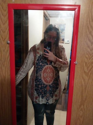 Design: Bohemian style paisley print with long sleeves and v neck design, the pleated details on the front add a sense of romance, tunic blouse
