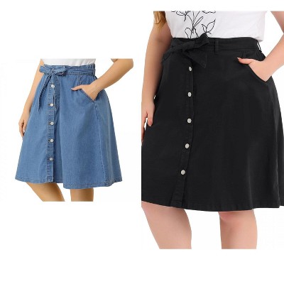 Elevate your casual chic style with the Women's Plus Size Denim Midi Skirt. This versatile piece features a classic design with a modern twist, boasting 5 pockets for added convenience and functionality. Crafted from stretch fabric, this skirt offers a comfortable and flattering fit, perfect for all-day wear. The trendy slits add a touch of feeling to the timeless denim look, giving you freedom of movement and a fashion-forward edge. Dress it up or down, this midi skirt is a must-have staple in every curvy woman's wardrobe.