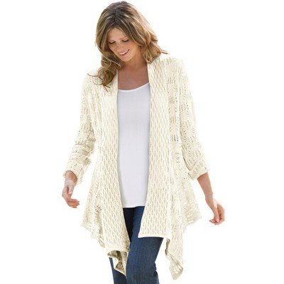 Women's Plus Size Open Front 3/4 Sleeve Sheer Lace Casual Cardigan - Agnes Orinda 1X White