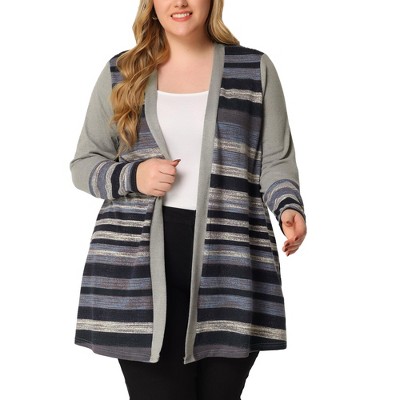Agnes Orinda Women's Plus Size Contrast Placket Sleeves Knit Open Front Cardigans - 1 of 4