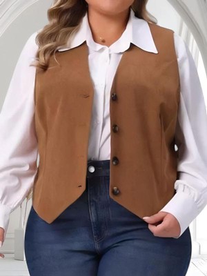 Women's Plus Size Corduroy Button Down V-neck Sleeveless Waistcoat Business Casual Vest - Agnes Orinda - 2 of 4Women's Plus Size Corduroy Button Down V-neck Sleeveless Waistcoat Business Casual Vest - Agnes Orinda - 3 of 4Women's Plus Size Corduroy Button Down V-neck Sleeveless Waistcoat Business Casual Vest - Agnes Orinda - 4 of 4