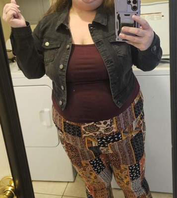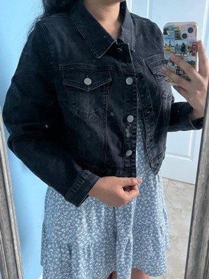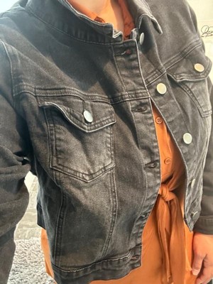 Women's Plus Size Cropped Long Sleeve Trendy Fashion Denim Jean Jackets - Agnes Orinda L Black