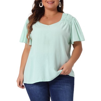 • Design: Women's plus-size tops, with pleated crew neck and tulip short sleeves, complement each other, showing a temperament of elegance and fashion