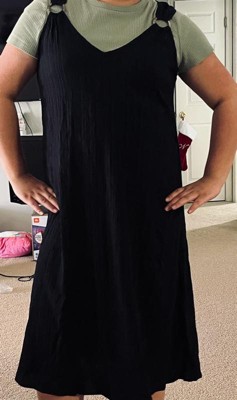 A: The dress features a V-neckline, sleeveless design, and a midi length for a stylish look.