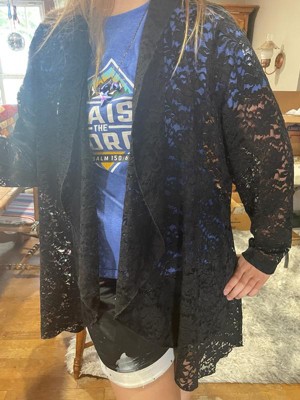 • Design: Open front cardigan design, floral lace embellishment, long-sleeved solid color sheer cover up