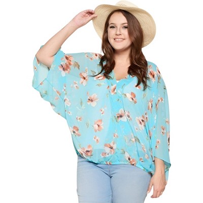 Women's Plus Size Plaid Gingham 1950s V-Neck Peplum Babydoll Tops with Button Detail - Agnes Orinda 3X Blue